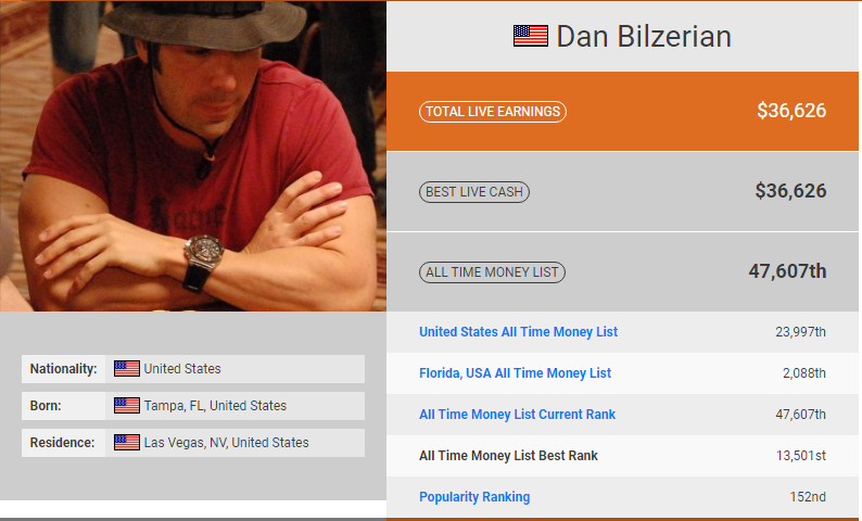 Это кажется особенно странным, учитывая, что в живых турнирах Билзерян выигрывал призы только один раз и получал за это скромную выплату в размере 37 000 долларов. Пока он остается единственным в своей карьере: