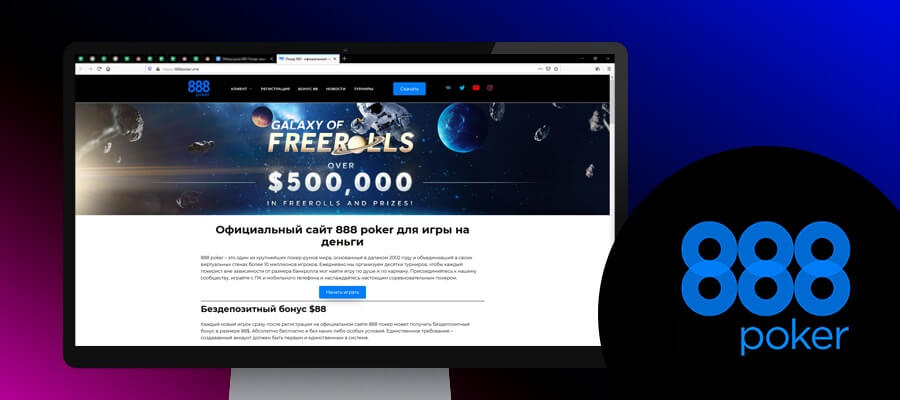 Если вы уже решили играть на 888Poker, значит, вы сделали правильный выбор. Если вы все еще думаете, вы можете быть уверены, что после регистрации у вас будет доступ к уникальным бонусам. Как минимум, $ 88 бездепозитный бонус получают все новые игроки в покер-руме. И, видишь ли, таких денег нет в дороге.