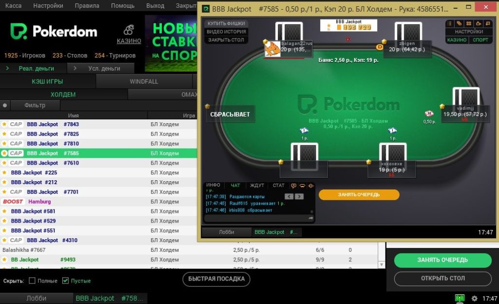 Pokerdom можно загрузить бесплатно! Рекомендуется зарегистрироваться на сайте покер-рума, что не займет много времени. Программное обеспечение покер-рума очень ценится — в него приятно и удобно играть.