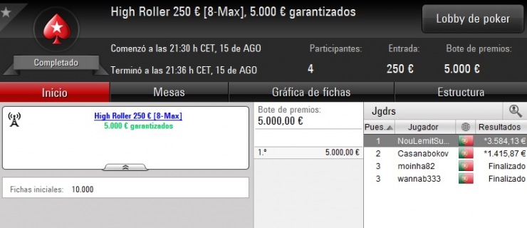 Турнир был не очень популярен среди игроков, чего нельзя сказать о трех португальцах из рассказа выше. Казанабоков присоединился к уже знакомым игрокам NouLemitSueca, moinha82 и wanab333.