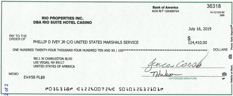 Сразу после победы в «Айви» казино Рио отправило свои денежные призы непосредственно в службу маршалов США, подразделение Министерства юстиции. Оттуда деньги будут отправлены в казино Borgata.