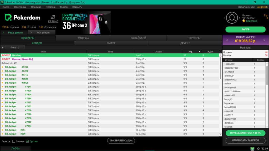 Холдем и Омаха со ставками от 0,50 / 1 и 0,25 / 0,50 руб .;